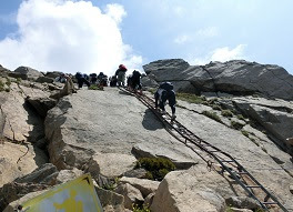 8合目にかけては、天狗の滑り岩と呼ばれる巨岩があり、梯子がかけられています。